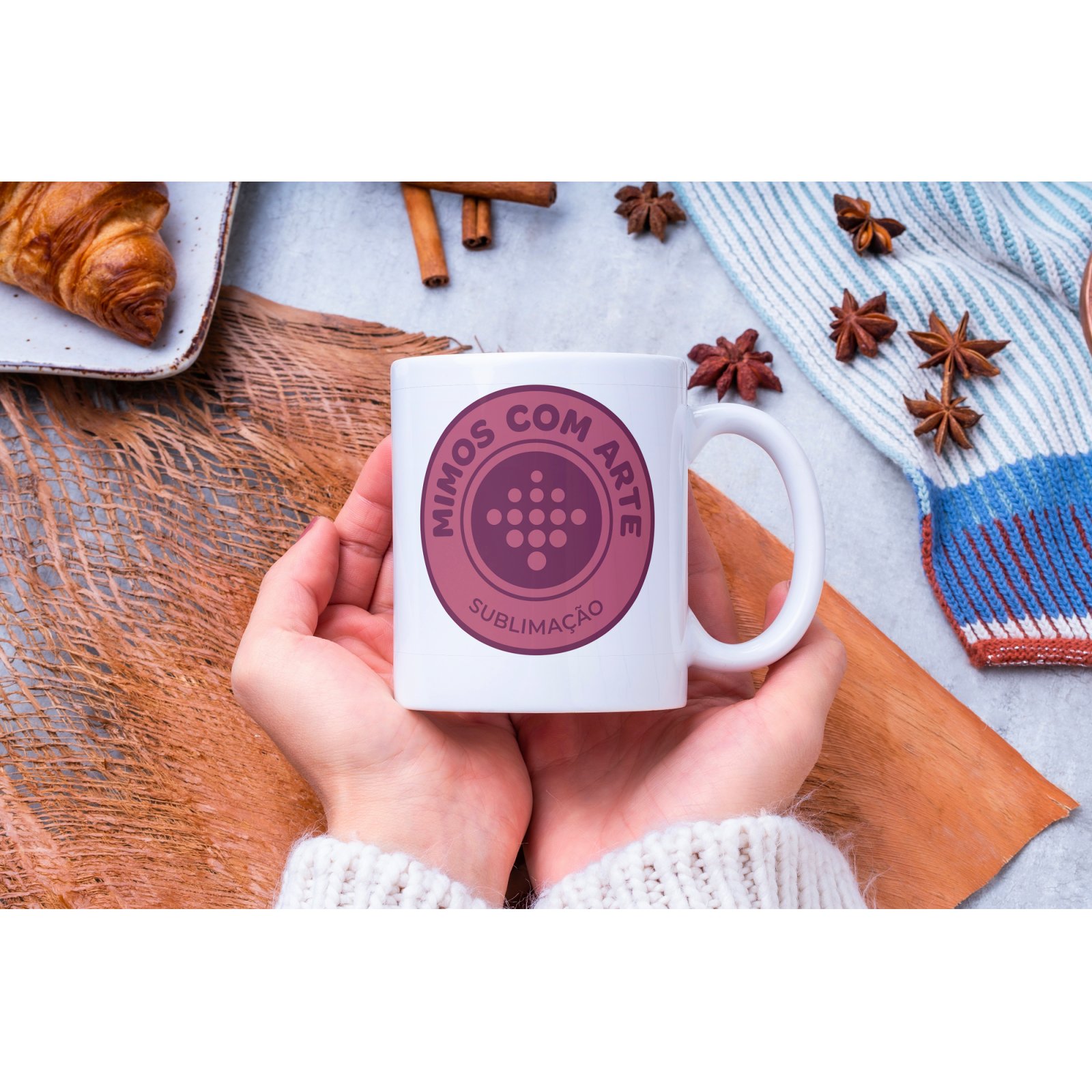Caneca com opção de colocar seu logotipo e nome.